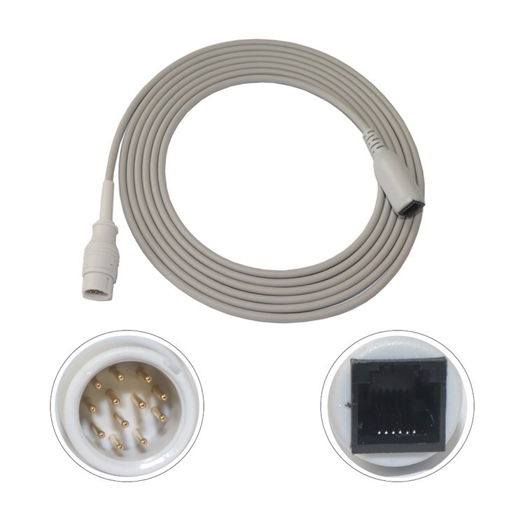 Káble IBP Interface sú vyrobené z materiálu TPU a plne tienené pre stabilný prenos signálu a ochranu proti rušeniu. Zástrčka je z TPU a kolíky sú pozlátené pre pevné pripojenie a vedenie. Ľahké adaptérové káble sú určené pre zákazníka na integráciu systémov monitorovania pacienta.