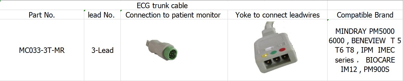 Kábel ECG 3-vodičový kmeňový kábel pre BENEVIEW T5 T6 T8, BIOCARE IM12, PM900S
