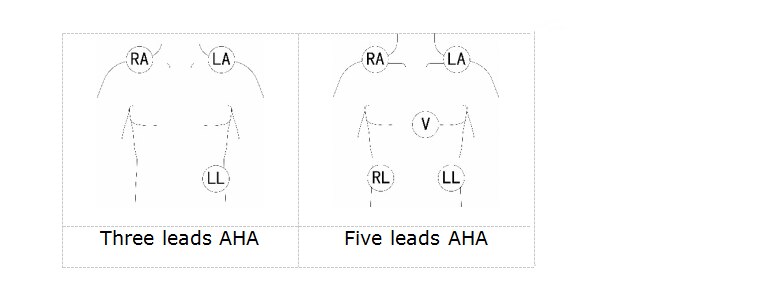 Typ pripojenia elektródy na ľudskom tele, ako je uvedené nižšie